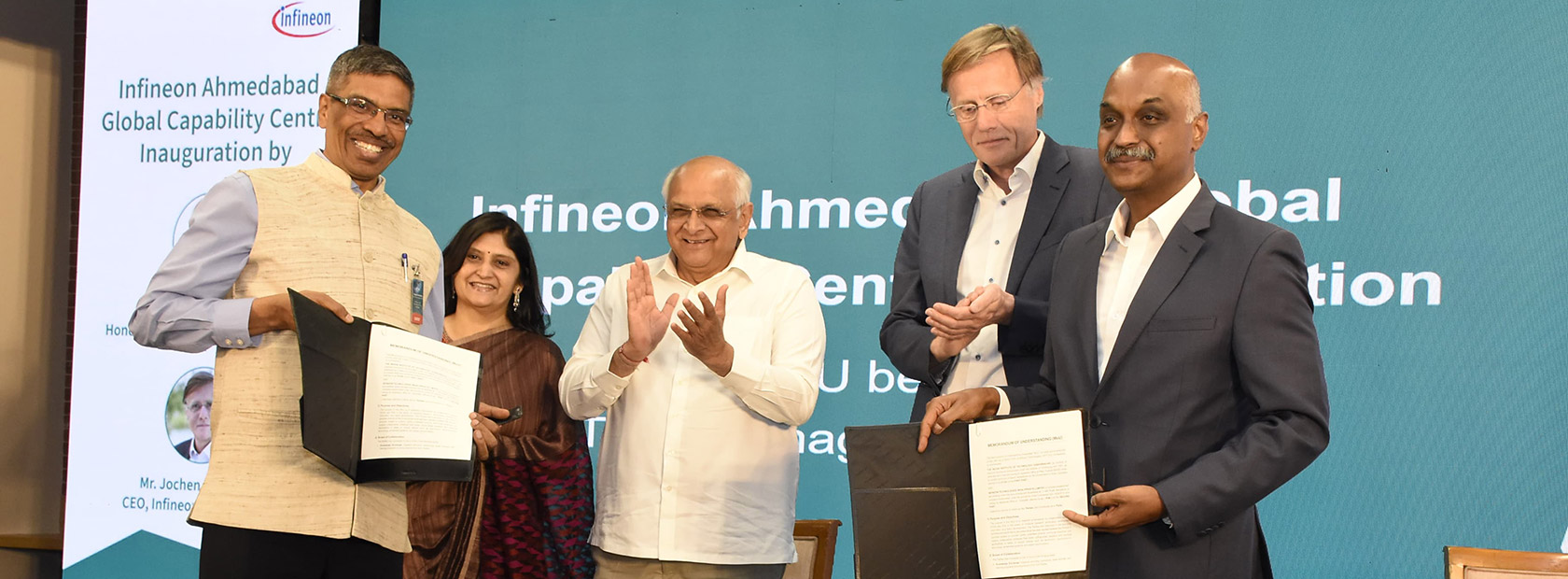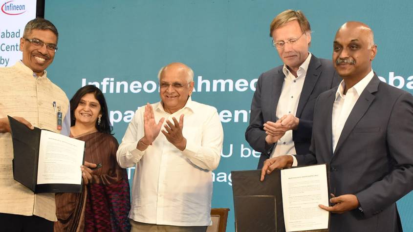 In the presence of the Chief Minister, a Memorandum of Understanding (MoU) was signed between Infineon Technologies and IIT-Gandhinagar to collaborate on industrial research, technology development, innovation, and talent development.