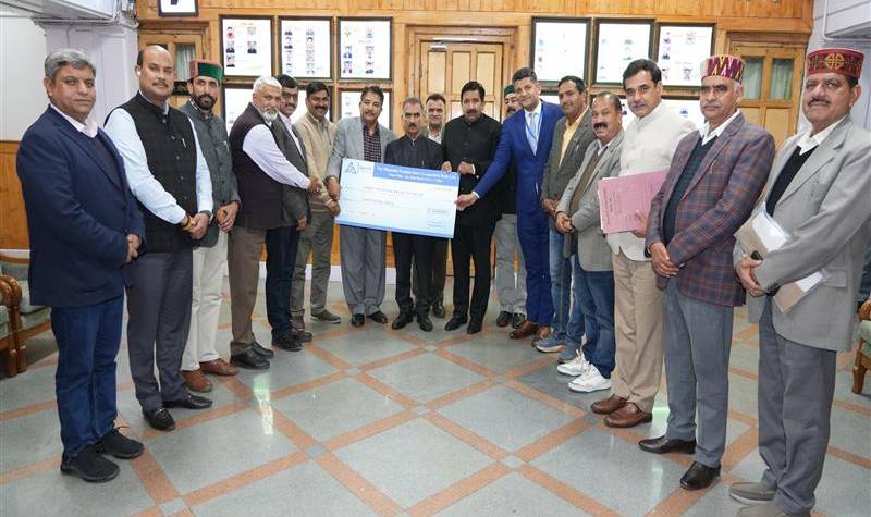 Deputy Chief Minister Mukesh Agnihotri handed over a cheque of Rs. 2 crore to Chief Minister Thakur Sukhvinder Singh Sukhu on behalf of the Himachal Pradesh State Cooperative Bank towards the Chief Minister’s Relief Fund.