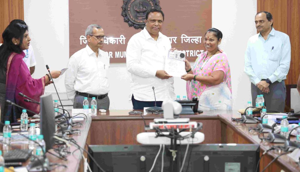 A program for distributing agreement letters for new homes to residents being rehabilitated under the Slum Rehabilitation Authority (SRA) in Bandra East was held at the Mumbai Suburban District Collector’s office. Minister Shelar personally handed over home agreement letters to 10 beneficiaries. Mumbai Suburban District Collector Rajendra Kshirsagar, senior officials, and staff were also present.