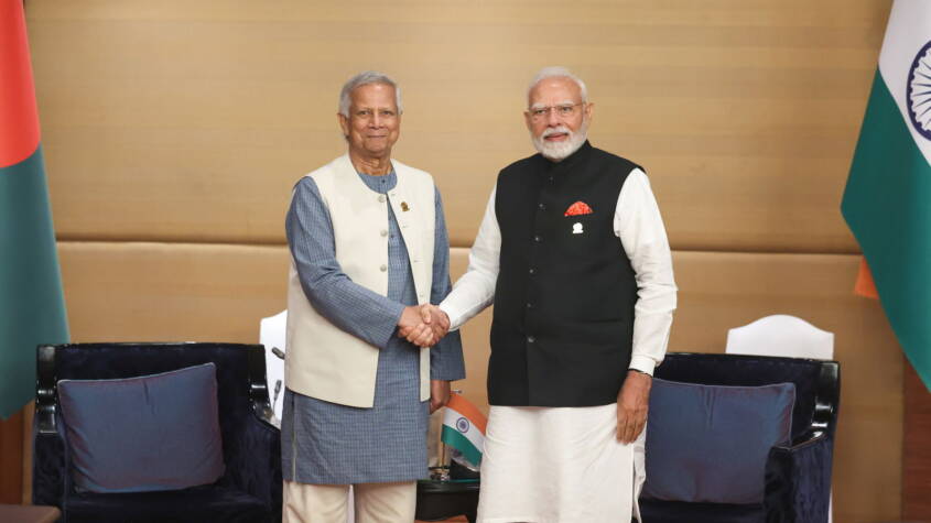 Prime Minister Shri Narendra Modi met today with Professor Muhammad Yunus, Chief Adviser of the interim government of Bangladesh, on the sidelines of the BIMSTEC Summit in Bangkok.
