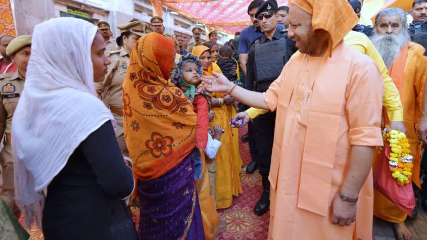 During the event, Chief Minister Yogi Adityanath distributed various items to beneficiaries under several schemes, including cheques, tablets, keys, Ayushman cards, poshan potlis, pug machines, and sports promotion materials. The Chief Minister also performed the Annaprashan Sanskar for children present at the event and handed out appointment letters to doctors and Anganwadi workers.