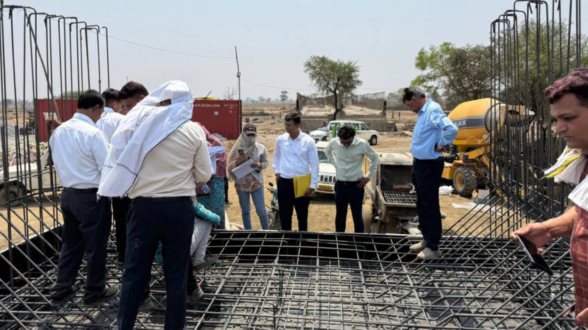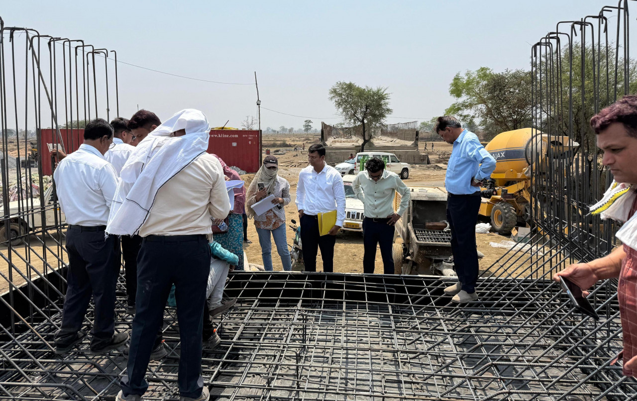 Chief Technical Examiner (Vigilance), Mr. R. Puram, conducted an on-site inspection today of the under-construction trough and DRB works under the Rajiv Samoda-Nisda Diversion Scheme (Phase-2). During the visit, he assessed the quality of the aqueduct using non-destructive testing equipment and collected samples for laboratory analysis. These samples will be tested at the laboratory in Raipur.