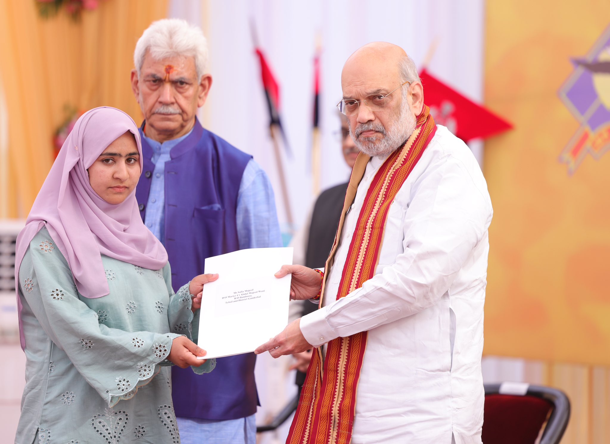 Amit Shah met the families of martyred policemen of J&K in Jammu and hands over appointment letters.