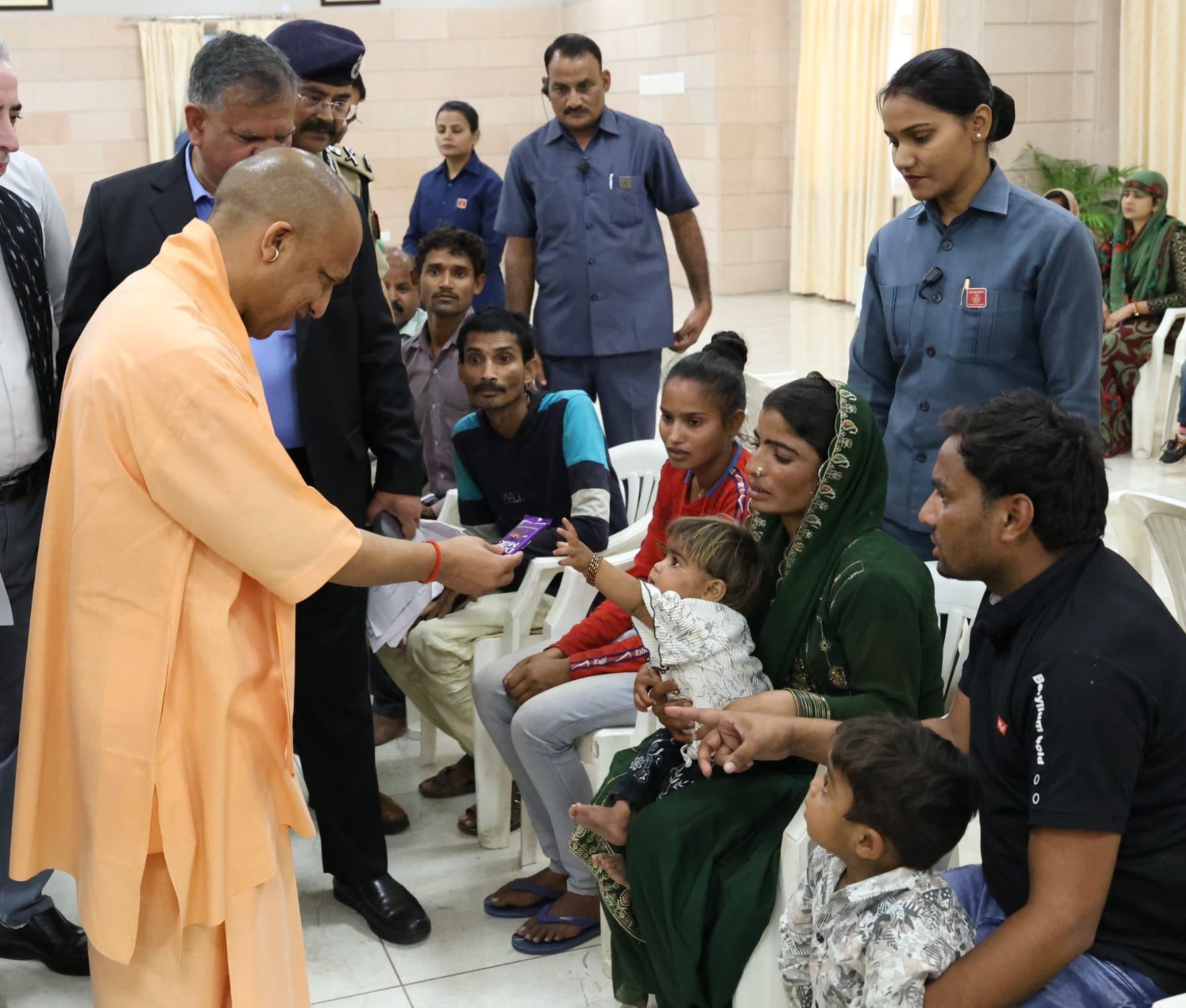 In a compassionate gesture, CM Yogi also provided electronic charging walking sticks to two differently-abled youths, Rajesh and Chandrashekhar, who had come from Chandauli seeking assistance. Demonstrating his humane side, he interacted warmly with children, accompanying their parents, holding them in his lap, feeding them, and giving them chocolates.
