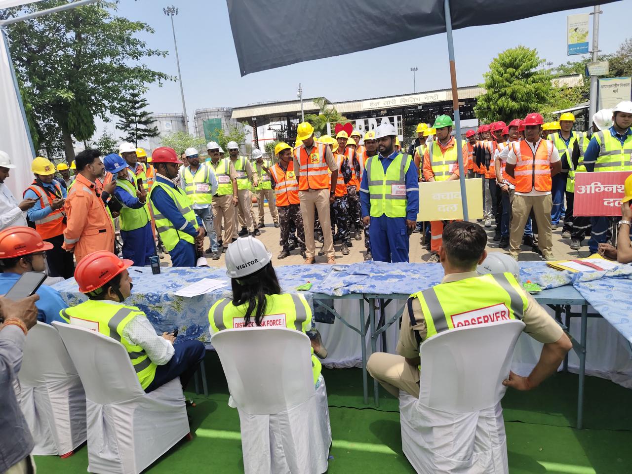public representatives and local citizens of the respective districts actively participated in the mock drill. During the exercise, a hypothetical gas leak situation was created in an industrial unit, and demonstration of immediate deployment of relief and rescue teams, firefighting operations, providing first aid to the injured and transporting them to the nearest hospital, and securing the affected area was carried out.