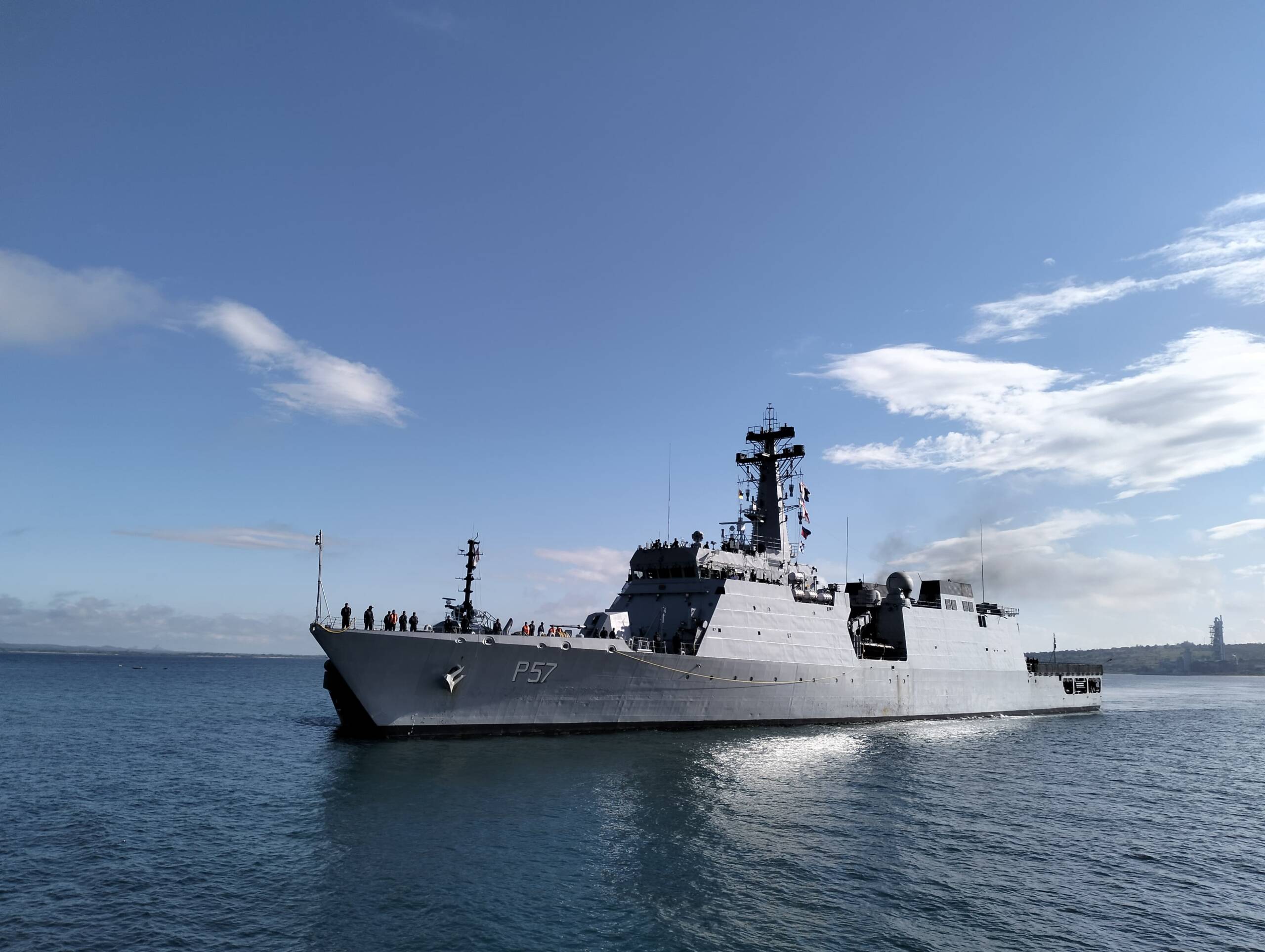 On her arrival at Nacala, the ship was welcomed by Commander Nelson H. Mabjaia, Chief of Commission, with the Mozambique Naval Band in attendance.