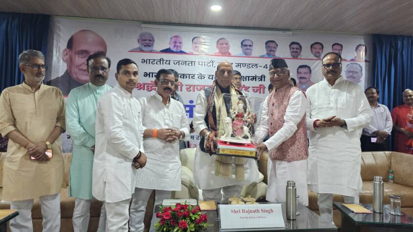 Starting the program, MLA Dr. Neeraj Bora shared that earlier most of the four wards in Faizullaganj were undeveloped, but now around 70% of roads have been paved. Wooden poles have been replaced with concrete ones and ABC wiring. A power substation has been built in Daudnagar, a primary health center opened, and a 50-bed hospital is under construction. A 9 km-long covered drainage system is being developed. A new bridge next to Harding Bridge and a permanent bridge replacing the pontoon bridge connecting Faizullaganj to Old Lucknow are underway. A green corridor, community center in Daudnagar, senior citizen daycare in Jankipuram Sector F, and a large library in Jankipuram Extension are also being built. The construction of an overbridge at Engineering College and an underpass for Sahara State are major developments for the area. Dr. Bora expressed gratitude to the Defence Minister for his contributions to Lucknow’s holistic development.