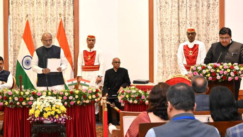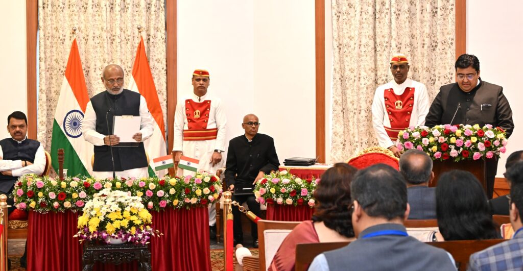 The oath-taking ceremony was attended by MLC Parinay Phuke, Chief Secretary Sujata Saunik, Principal Secretary Brijesh Singh, senior journalists, and dignitaries from various walks of life.