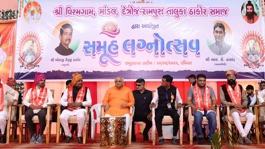 Gandhinagar : Chief Minister Shri Bhupendra Patel attended the 21st ‘Samooh Lagnotsav’ (mass wedding ceremony) of the Thakor community from Viramgam, Mandal, and Detroj-Rampura talukas, held in Ughroj village of Mandal taluka