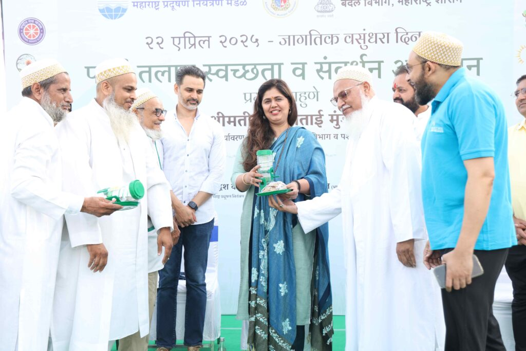The state-level campaign ‘Save the Environment, Adorn the Earth’ was launched during the event and will run for nine days from April 22 to May 1. As part of the launch, a Powai Lake cleaning drive was held, and Pankaja Munde planted a sapling of Tamhhan, the state’s official flowering tree.