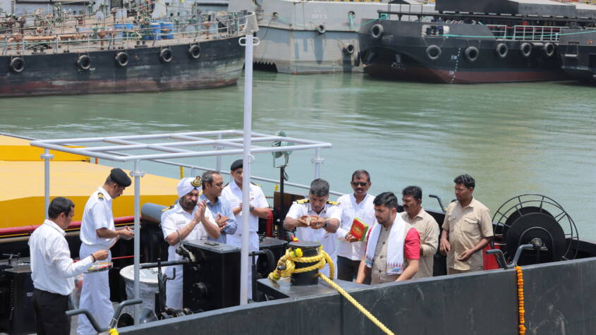 The contract for construction and delivery of eleven (11) Ammunition Cum Torpedo Cum Missile (ACTCM) Barges was concluded with M/s Suryadipta Projects Pvt Ltd, Thane on 05 Mar 21, an MSME Shipyard. The Shipyard has indigenously designed these Barges in collaboration with an Indian Ship Design firm and subsequently model tested at Naval Science and Technological Laboratory, Visakhapatnam successfully to ensure seaworthiness. These barges are built in accordance with relevant Naval Rules and Regulations of Indian Register of Shipping (IRS). These Barges are proud flag bearers of “Make in India” and “Aatmanirbhar Bharat” initiatives of Government of India. Nine ACTCM Barges have already been delivered and the shipyard has also been awarded a contract for construction and delivery of four Sullage Barges to the Indian Navy thereby highlighting the Indian Navy’s commitment towards encouraging MSMEs.