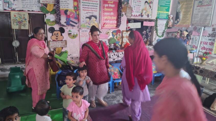 Chandigarh- Haryana Women and Child Development and Irrigation and Water Resources Minister, Smt. Shruti Choudhry conducted a surprise visit to the Anganwadi Centre in Jhanjhari village of Karnal district today. During the visit, she reviewed the arrangements at the centre and gave necessary directions to the District Program Officer. She also checked various registers at the Anganwadi centre, including records of children’s attendance, nutrition, and health. She also inspected the quality of the food served to the children.