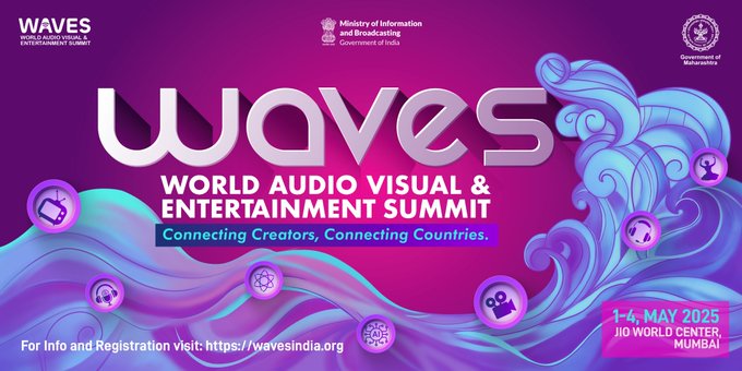 Mumbai – The ‘WAVES 2025’ Global Audio-Visual and Entertainment Summit, organized by the Central Government and hosted by the Government of Maharashtra, will be held at the Jio World Centre in BKC, Mumbai from May 1 to 4, 2025. Prime Minister Narendra Modi will inaugurate the summit, joined by Chief Minister Devendra Fadnavis, Deputy Chief Ministers Eknath Shinde and Ajit Pawar, and Industries Minister Uday Samant.