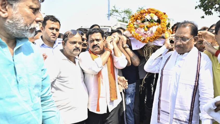 Raipur : Chief Minister Shri Vishnu Deo Sai paid his respects and extended a shoulder to the mortal remains of the late Shri Dinesh Mirania, a businessman from Chhattisgarh who tragically lost his life in the recent terrorist attack in Pahalgam, Jammu and Kashmir. Attending the funeral, the Chief Minister offered floral tributes and prayed for peace to the departed soul.