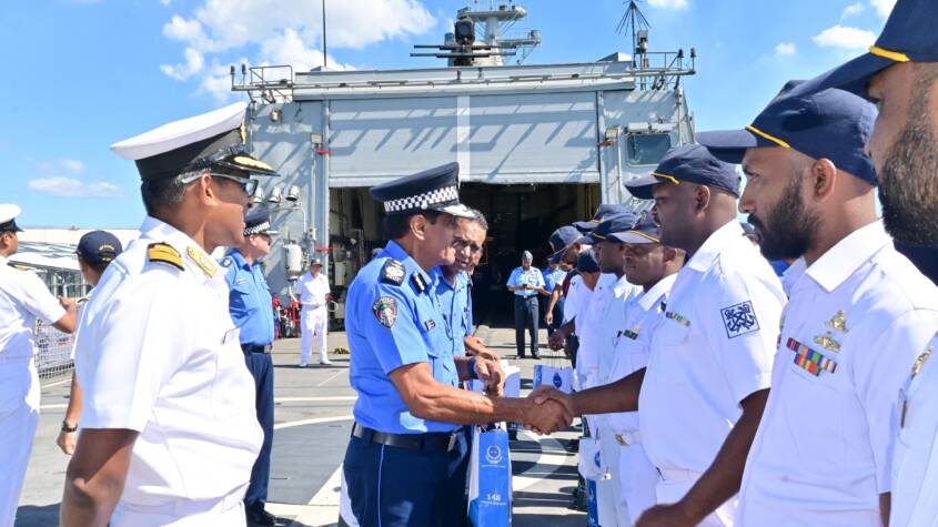 During the port call, the Commanding Officer, IOS SAGAR, will call on the Commandant, National Coast Guard, the Commissioner of Police and the High Commissioner of India. Various activities are planned during the two-day port call, including the visit by the IOS SAGAR crew to the Maritime Air Squadron, Special Mobile Force Squadron and the Police Helicopter Squadron. The Commissioner of Police will also interact with the multinational crew of IOS SAGAR at Police Headquarters. The ship will be open to visitors on 27 Apr 25. Activities like trekking, Joint Yoga session and friendly sports fixtures have also been planned during the ship’s stay at Port Louis.