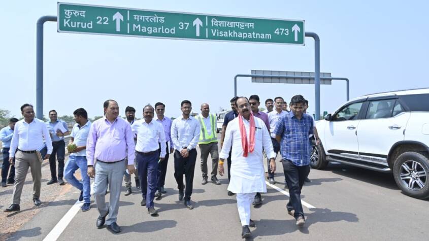 The 464-kilometer-long six-lane expressway will connect Raipur to Visakhapatnam via Dhamtari, Kanker, Kondagaon, Koraput, and Sabbavaram. Being developed under the Bharatmala Project, a major portion of the expressway has already been completed. During the inspection, Mr. V.K. Bhatpahari, Chief Engineer of the Public Works Department, along with officials from the Bharatmala Project, PWD, and the executing agency, accompanied the Deputy Chief Minister.