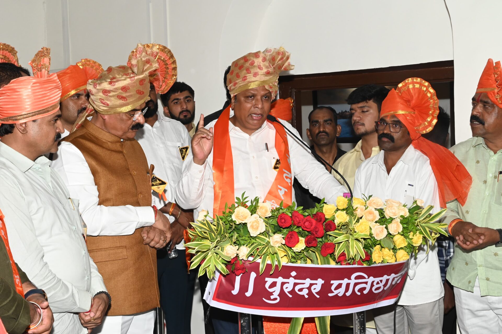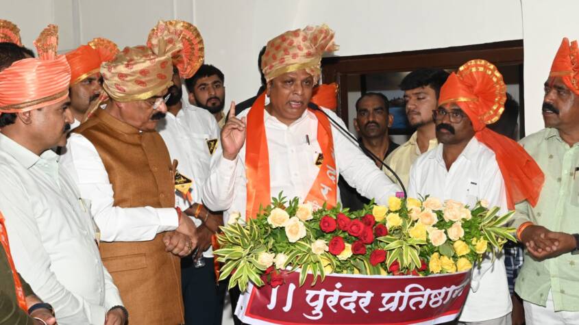 Earlier, women in traditional attire sang a cradle song honoring the Maharaj. Minister Shelar also presented awards on behalf of the Purandar Foundation.