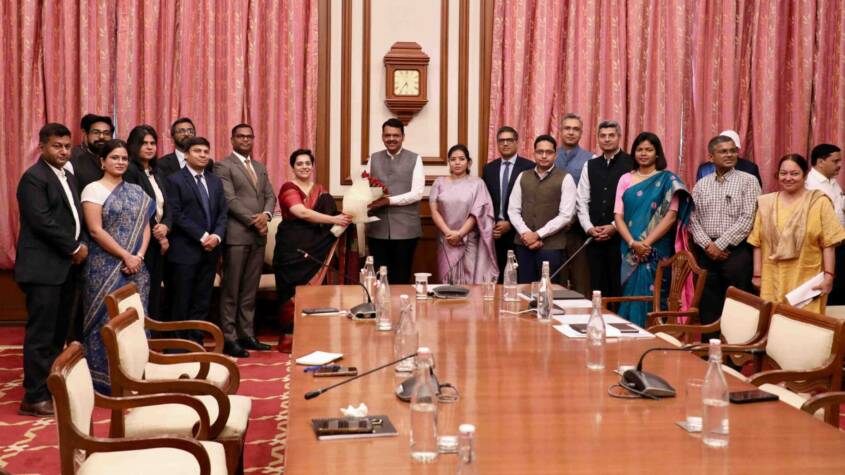 The Chief Minister interacted with 14 officers from the 2013–14 batch of the Indian Foreign Service at Sahyadri Guest House. Also present were Additional Chief Secretary to the Chief Minister Vikas Kharge, Secretary to the CM Dr. Shrikar Pardeshi, and Additional Chief Secretary of the Protocol Department Seema Vyas.