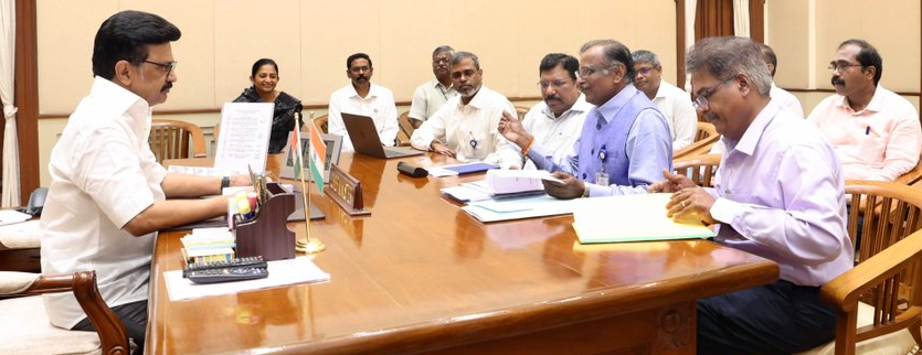 Hon’ble Chief Minister of Tamil Nadu, Thiru M.K. Stalin, held a review meeting at the Secretariat on 19.05.2025 regarding the multi-departmental measures to be undertaken in low-lying areas of North-West Chennai prone to flooding. He directed officials to proactively complete precautionary works and ensure 24×7 functioning of zonal control rooms. He emphasized the readiness of rescue equipment and the effective use of communication systems.