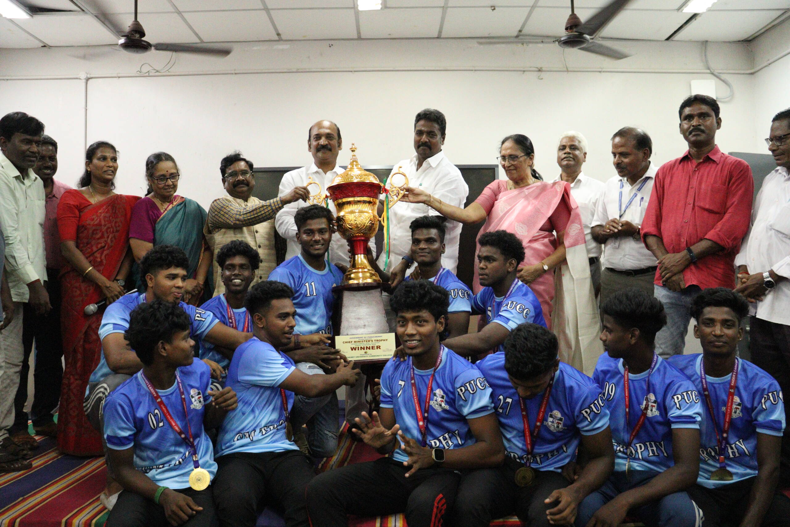 Pondicherry University Community College conducted the Chief Minister’s Kabaddi Inter Collegiate Tournament recently for the first time in Puducherry Union Territory. Over 20 Colleges with both men and women teams participated in the tournament. The prize distribution function was held at Pondicherry University Community College. The Principal in charge of the College Prof Lalitha Ramakrishnan welcomed the dignitaries and the student gathering and Dr. S. Jagadeeswari, the organiser of the sports events briefed about the activities. The Vice-Chancellor of Pondicherry University, Prof. Phanithi Prakash Babu distributed the trophies and medals to the winners of the kabaddi tournament and all the sports and athletic events.