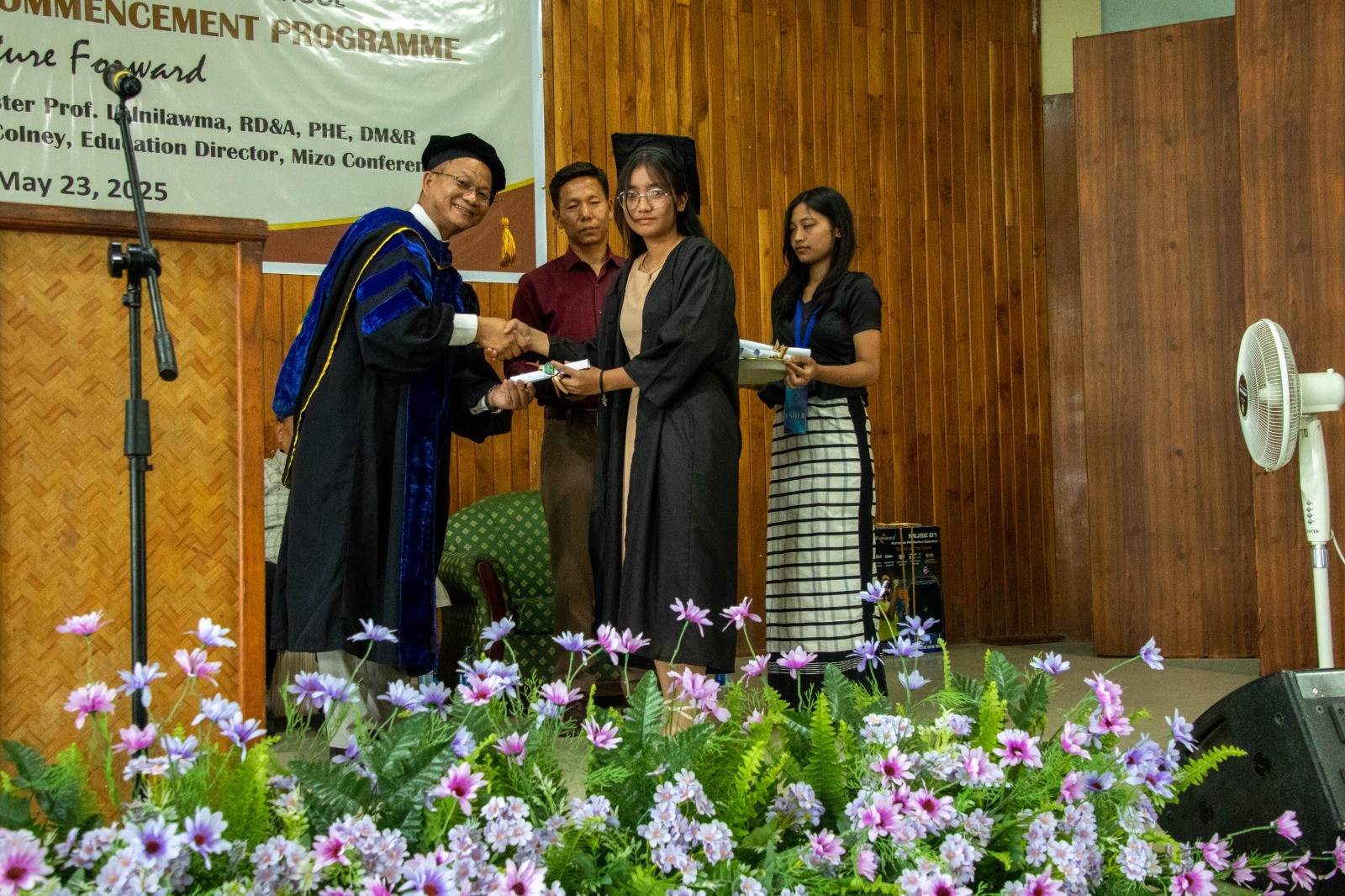 Aizawl – Helen Lowry Higher Secondary School today held its 27th Graduation Commencement Ceremony for students of Classes 10 and 12 who successfully passed their examinations for the 2024–2025 academic session. The event was held at the Helen Lowry Auditorium, located at Seventh-day Tlang, Vaivakawn, and was graced by the Minister of Rural Development & Administration, Prof. Lalnilawma, as the chief guest.
