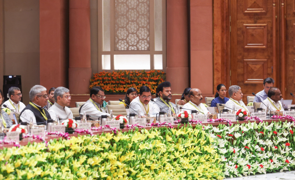 Prime Minister Shri Narendra Modi chaired the 10th Governing Council Meeting of NITI Aayog at Bharat Mandapam, New Delhi, earlier today. It was attended by Chief Ministers and Lt. Governors representing 24 States and 7 UTs. This year’s theme was Viksit Rajya for Viksit Bharat@2047. The meeting commenced with a minute of silence in the remembrance of the victims of Pahalgam terrorist attack.
