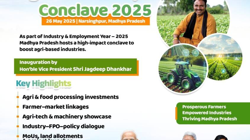 The ‘Agri-Industry Conclave 2025’ is being organized to promote agriculture and horticulture-based industries in Madhya Pradesh, attract investment in food processing, and connect farmers with better market opportunities. The event will serve as a platform for dialogue, policy exchange, and collaboration among industrialists, farmer-producer organizations (FPOs), and policymakers.