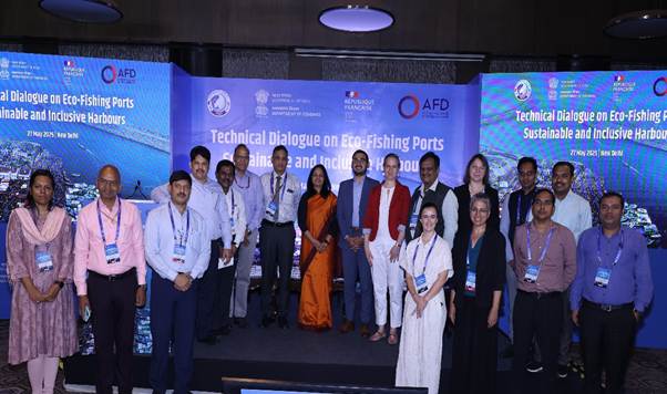The Department of Fisheries under the Ministry of Fisheries, Animal Husbandry & Dairying (MoFAH&D) and Agence Française de Développement (AFD) [AFD is an Agency of Development based out of France for technical and financial cooperation] , convened a Technical Dialogue on Eco-Fishing Ports : Sustainable and Inclusive Harbours in New Delhi, today to explore the “eco-fishing ports” concept designed to operate with reduced environmental footprints while maximising economic performance, social inclusion and ecosystem protection. The dialogue focused on promoting best port practices for a healthier environment and safer fish handling, alongside discussions on post-construction evaluation, maintenance and continuous improvement of port infrastructure. The meeting was held under the chairmanship of Ms. Neetu Kumari Prasad, Joint Secretary (Marine), Department of Fisheries. The deliberation was also graced by Ms. Lise Breuil, Country Director, AFD, Ms. Camille Severac, Deputy Country Director, ADF and Mr. Pablo Ahumada, counsellor for International Affairs, French Ambassy. Officials from the state fisheries department, delegates from France, Indonesia, Food and Agriculture Organization (FAO), Asian Development Bank, IIT Madras, Sea food export Association and representatives from Industry also participated in the dialogue.