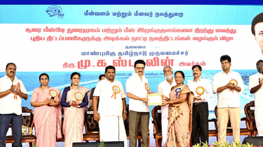 Additionally, under the Tamil Nadu State Apex Fisheries Cooperative Federation, the Chief Minister launched the “Alaigal” microcredit scheme for women self-help groups and distributed welfare benefits worth ₹10.67 crore to 2,290 fisher beneficiaries.