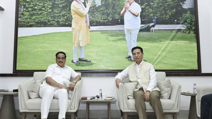 Aizawl : Union Jal Shakti Minister Pu C.R. Patil called on Chief Minister Pu Lalduhoma at his residence for a courtesy meeting and held discussions on key water resource initiatives. The meeting included a detailed discussion on the Mat Lui Integrated Water Resources Management Project.