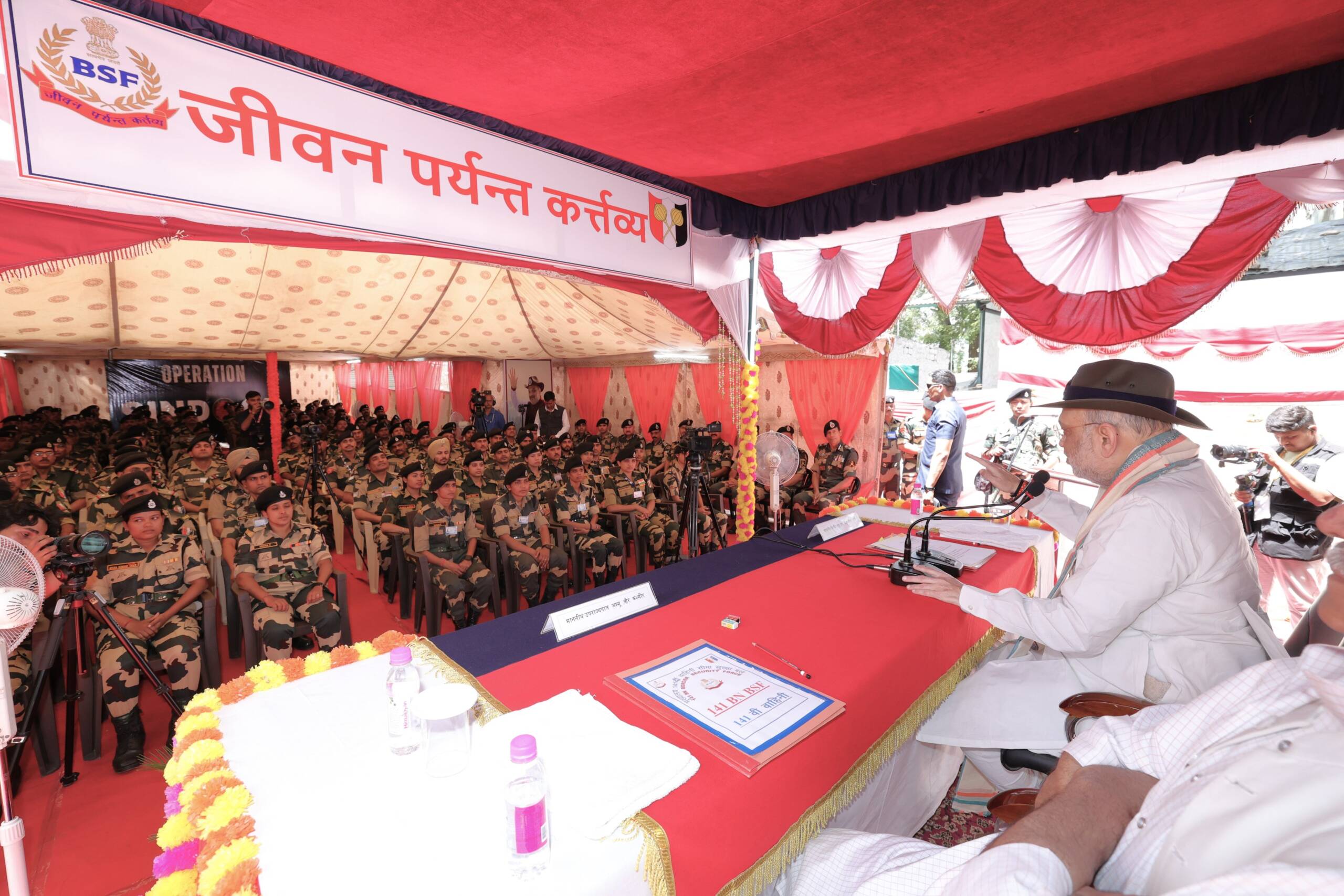 Union Home Minister and Minister of Cooperation Shri Amit Shah addressed Border Security Force (BSF) personnel in Poonch, Jammu and Kashmir today. On this occasion, the Lieutenant Governor of Jammu and Kashmir, the Union Home Secretary, the Director of the Intelligence Bureau, the Director General of the Border Security Force, and several other distinguished individuals were present.