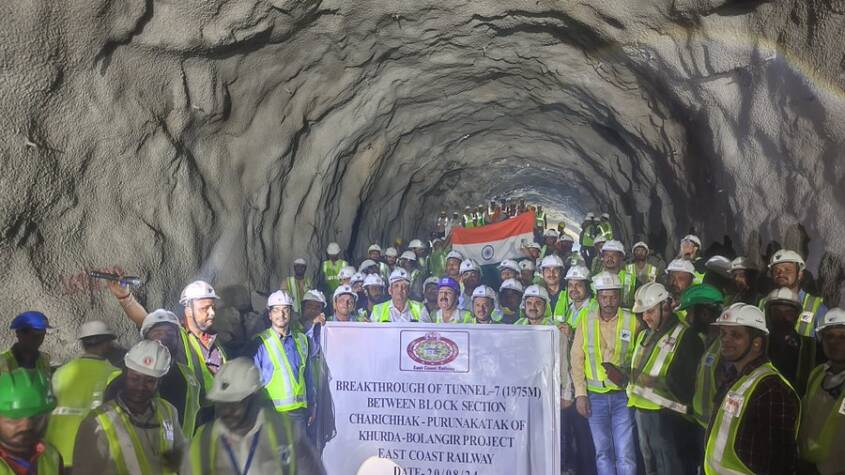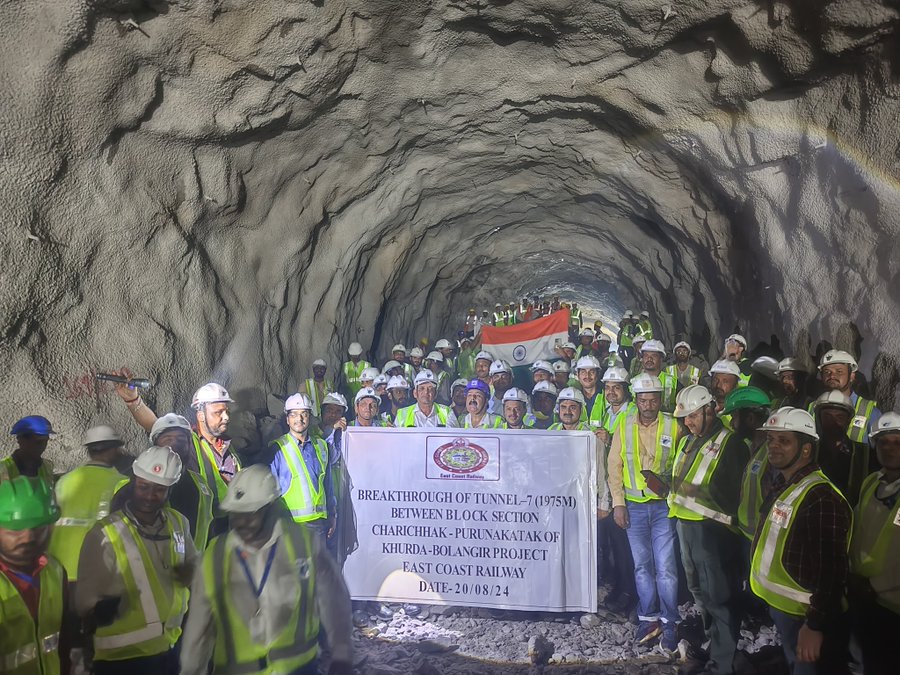East Coast Railways achieves successful breakthrough of Tunnel No. 2 in Khurda Road – Bolangir Rail Project