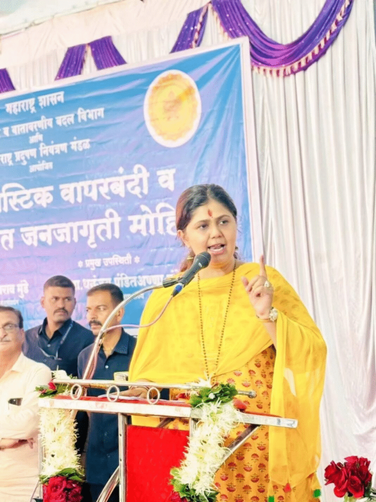 Munde pointed out that while several environmental initiatives are ongoing, they must not remain limited to the government alone. The success of these efforts depends on active public participation. She announced that moving forward, no visitors to her government residences in Parli or Ramtek in Mumbai would be allowed to bring plastic bags, flower bouquets, or garlands in plastic. “Those arriving with plastic items will be denied entry. This is a firm step towards a plastic-free Maharashtra,” she asserted.
