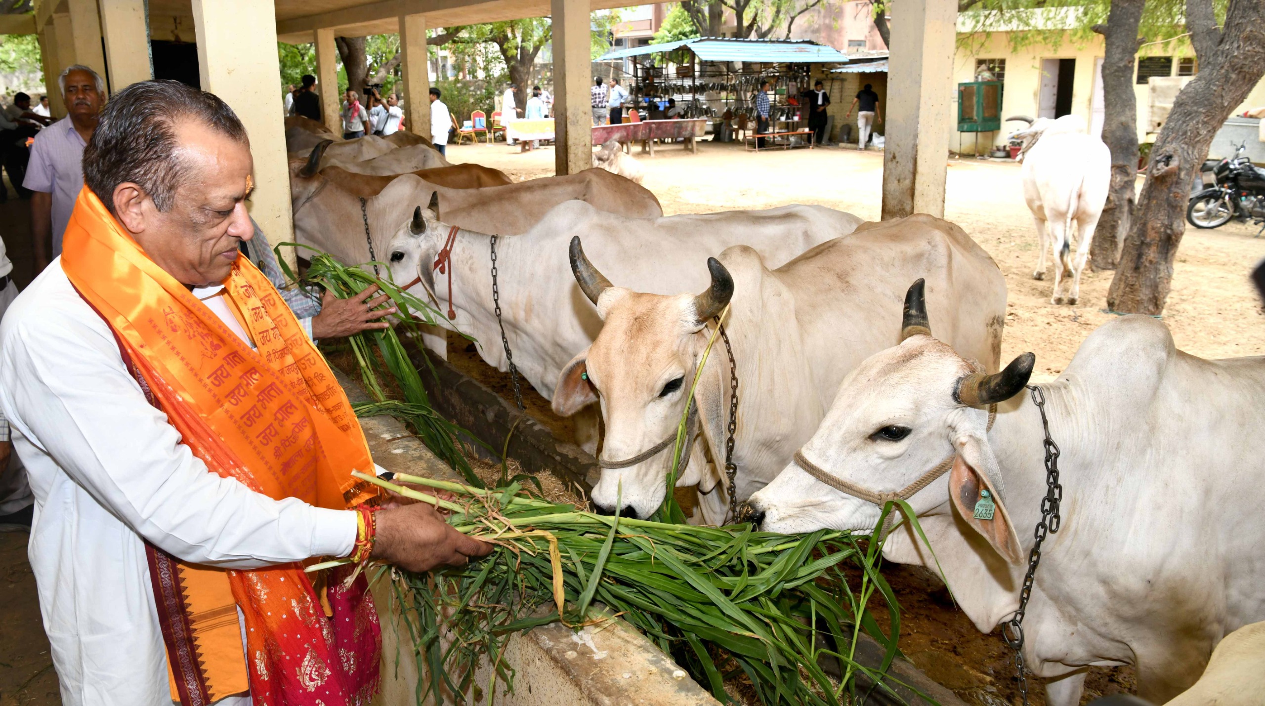 Also present were Dr. Anand Sejra, Director of the Animal Husbandry Department and Executive Officer of RLDB; Mr. Shivratna Chitlangia, General Secretary of Pinjarapole Gaushala; Minister Shri Vivek Laddha; Additional Director of Animal Husbandry Dr. Suresh Meena; Dr. Vikas Sharma; and other senior officials and Gaushala staff.