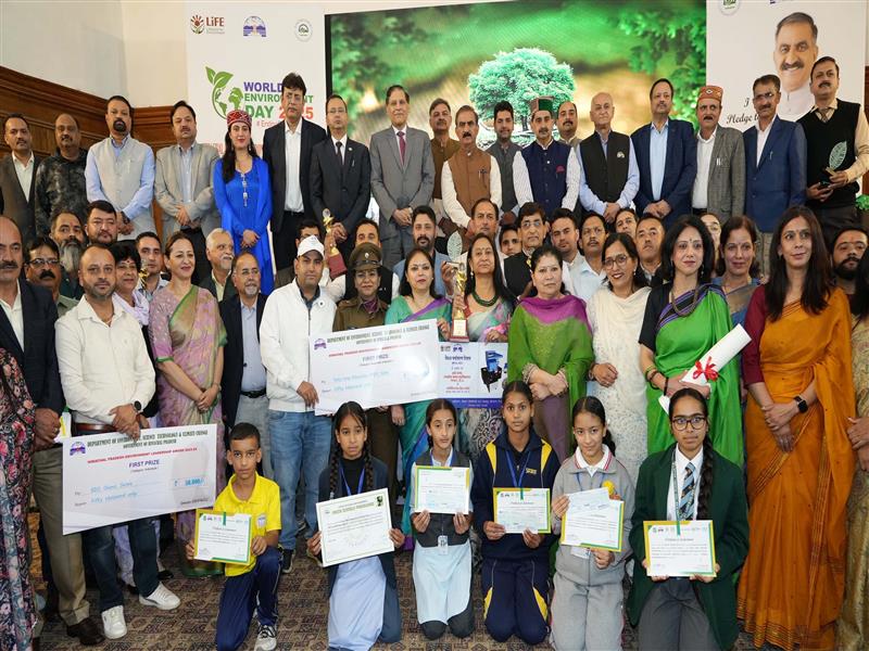 On the occasion of World Environment Day, Chief Minister Thakur Sukhvinder Singh Sukhu today distributed the Environment Leadership Awards to eight individuals and institutions for their outstanding contributions in the field of environmental conservation The awards ceremony was held at Hotel Peterhof in Shimla. The first and second prizes carried a cash award of Rs. 50,000 each, while the third prize carried Rs. 25,000.
