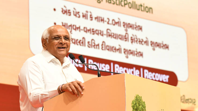 As part of the World Environment Day celebrations, Chief Minister Shri Bhupendra Patel visited an exhibition featuring innovative projects and startups working in the areas of plastic recycling and reuse. He interacted with the participants and encouraged them for their contributions towards sustainability. A documentary was also screened covering key topics such as Best Practices in Plastic Waste Management in Gujarat, the Ek Ped Maa Ke Naam campaign, and other awareness activities conducted in the lead-up to World Environment Day. In Surat, strategic MoUs were signed between the Common Effluent Treatment Plant (CETP) and its member units for effluent trading, in the presence of the Chief Minister. Additionally, Shri Bhupendra Patel virtually inaugurated, laid foundation stones, and launched a total of 11 diverse development and environment-related projects.