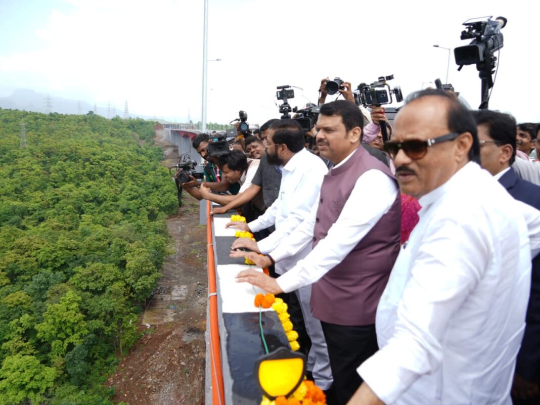 The final phase of the Samruddhi Expressway and the southbound lane of Thane Creek Bridge No. 3 on the Sion–Panvel Highway were virtually inaugurated by CM Fadnavis. The ceremony was attended by Deputy Chief Ministers Eknath Shinde and Ajit Pawar, School Education Minister Dadaji Bhuse, PWD Minister Shivendrasinhraje Bhosale, Minister of Food and Drug Administration Narahari Zirwal, Minister of State Meghna Sakore Borde, MLAs and senior officials including ACS Manisha Mhaiskar and MSRDC Vice-Chairman Anil Gaikwad.