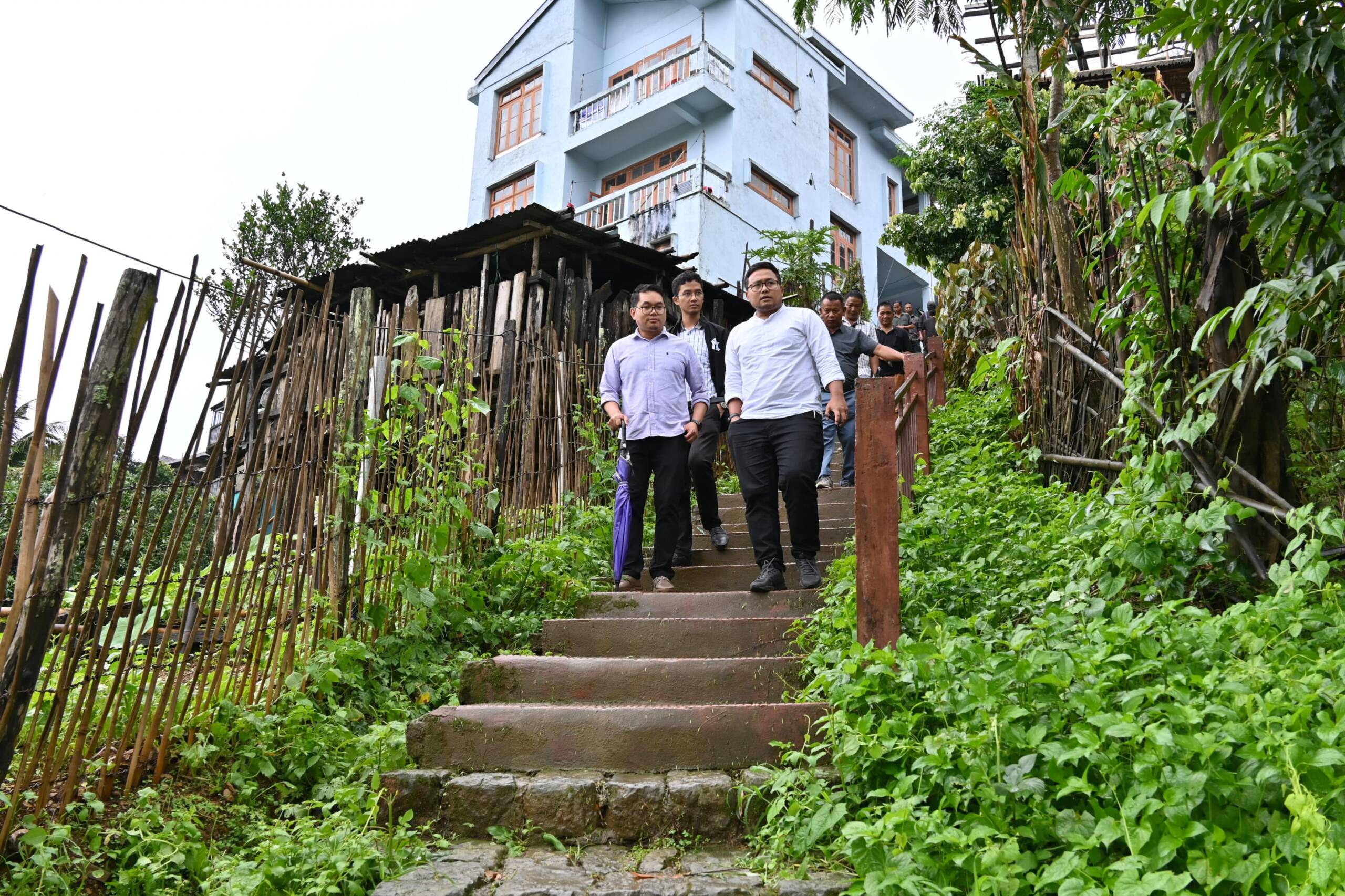 Hnahthial : South Tuipui MLA Pu Jeje Lalpekhlua visited several locations across Hnahthial town on June 4 to assess the damages caused by the recent severe rainstorm. He visited homes and sites affected by landslides and flooding, interacting with residents and evaluating the extent of the destruction. In some cases where families had to vacate their homes, he provided financial assistance to help with temporary relocation or essential needs.