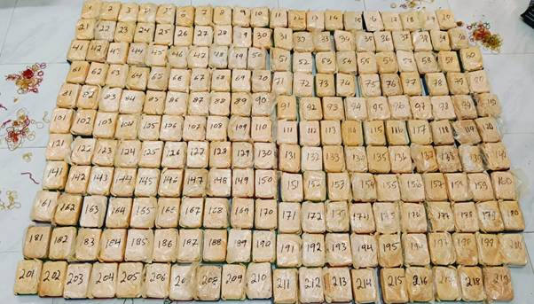 Preliminary investigation indicates that the seized contraband drugs were smuggled into the bordering areas of Churachandpur District from Myanmar through the porous forested Indo-Myanmar border. Inspite of the challenges and difficulties, a well-coordinated action by the law enforcement agencies led to the successful operation. The NDPS Act prescribes stringent punishment to offenders which may entail rigorous imprisonment upto ten years.