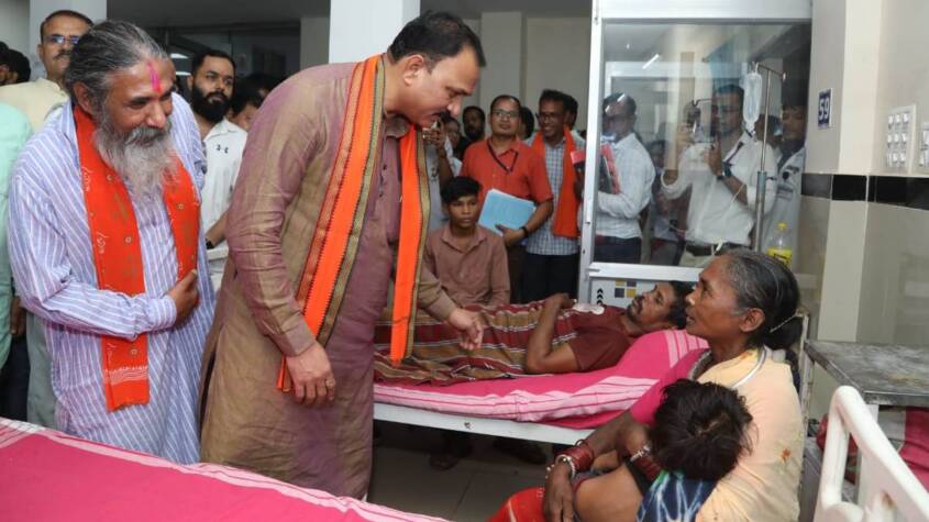 While visiting the male ward, he spoke with patient Karuram and wished him a swift recovery. In the general ward, he interacted with 86-year-old Brijlal Sahu from Bagodar, who was suffering from leg swelling. Brijlal shared that he was receiving free treatment through the Ayushman card. The Health Minister responded, saying, “This is Vishnu’s good governance — quality treatment is ensured here.” He also met with Ramvati Nishad from Dudhwa, offering her words of encouragement, saying, “You’ll be fine, Ma — don’t worry.”