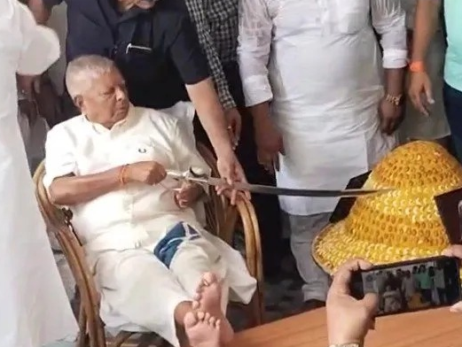 Patna — Rashtriya Janata Dal (RJD) supremo Lalu Prasad Yadav celebrated his 78th birthday on Wednesday in a grand, symbolic affair that blended festivity with political messaging. Marking the occasion in his inimitable style, Lalu Yadav cut a 78-pound cake with a sword, surrounded by his family, including elder daughter Misa Bharti and Leader of Opposition Tejashwi Yadav.
