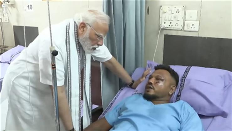 Ahmedabad : Prime Minister Narendra Modi on Friday met Vishwash Kumar Ramesh, the lone survivor of the tragic Air India plane crash that claimed 241 lives. Ramesh, a British national of Indian origin, is currently undergoing treatment for his injuries at the Civil Hospital in Ahmedabad.