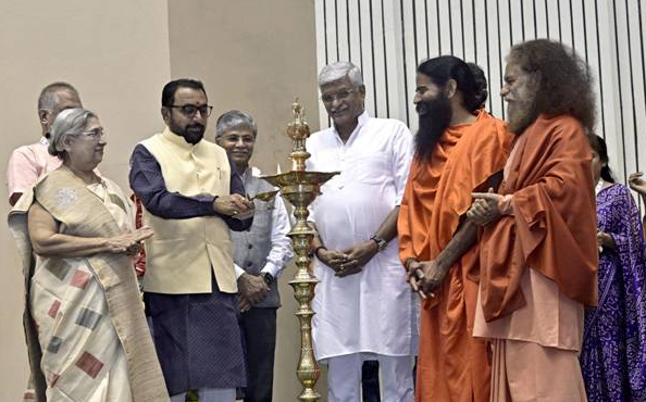 The event commenced with the ceremonial lighting of the lamp by the Union Minister of Culture and Tourism Shri Gajendra Singh Shekhawat and Union Minister of State (Independent Charge) Ministry of Ayush and Union Minister of State for Health & Family Welfare, Shri Prataprao Jadhav. They were joined by several eminent dignitaries including Swami Ramdev, Founder-President, Patanjali Yogpeeth, Haridwar, Shri Subodh Tiwari, CEO, Kaivalyadhama, Lonavla & Secretary General, Indian Yoga Association, Dr. Hansaji Yogendra, Director, The Yoga Institute, Swami Chidanand Saraswati, Spiritual Head, Parmarth Niketan, Vaidya Rajesh Kotecha, Secretary, Ministry of Ayush.