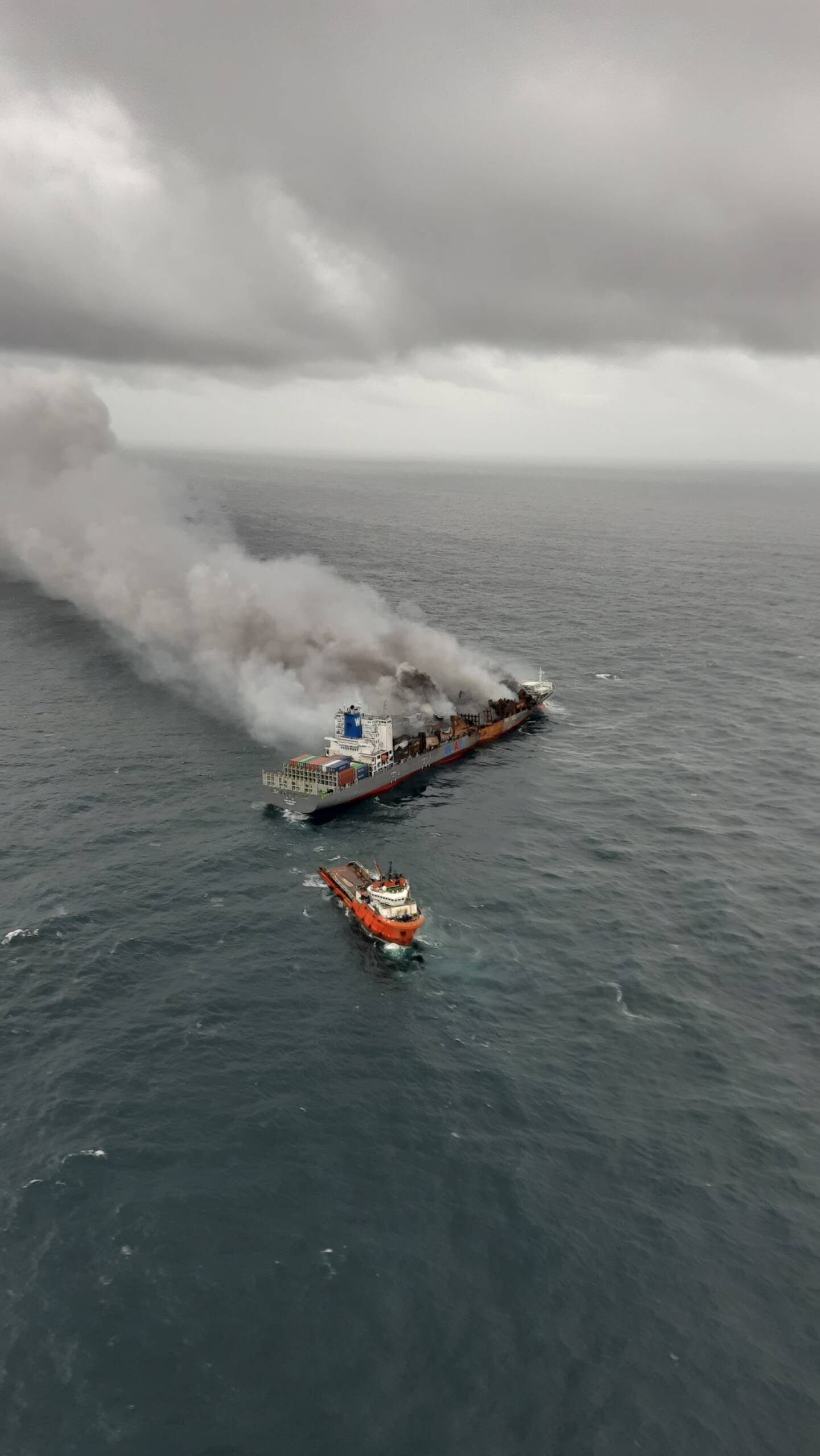 Three ICG Offshore Patrol Vessels are continuing to escort the container ship and sustain firefighting operations. At present, only thick smoke and a few isolated hotspots remain onboard, a testament to the ICG’s effective firefighting efforts that have helped avert a major environmental disaster.