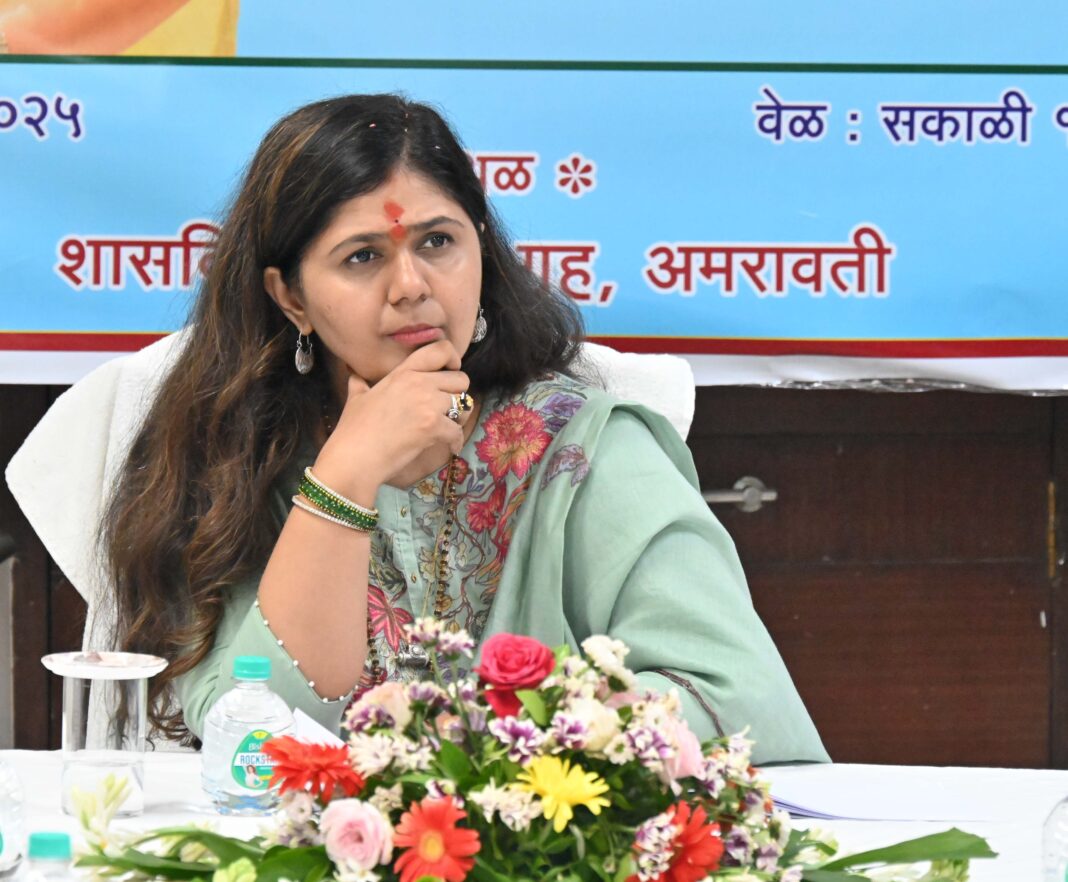 Amravati – With the government’s efforts, farmers are increasingly turning towards animal husbandry. The Animal Husbandry Department must take responsibility for the health and well-being of these animals. If required, the department should also provide doorstep veterinary services, directed Minister for Animal Husbandry, Environment, and Climate Change, Pankaja Munde, during a departmental review meeting held today.