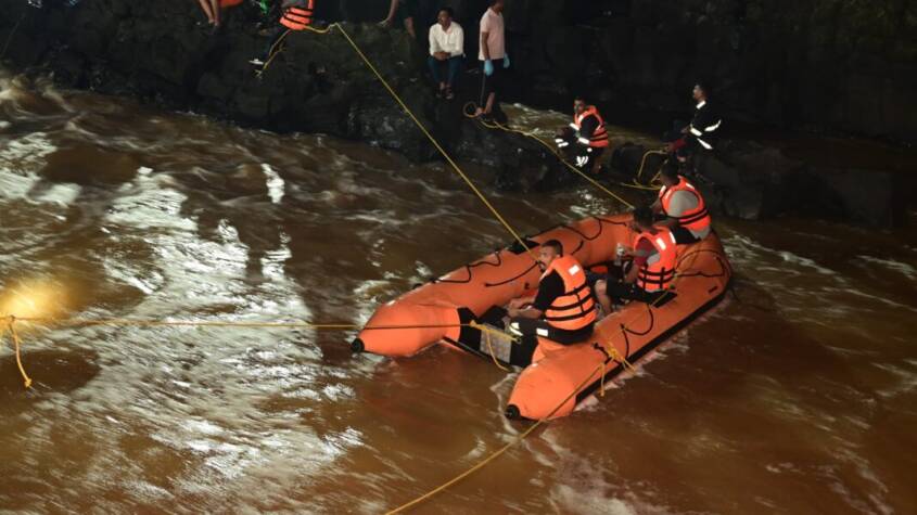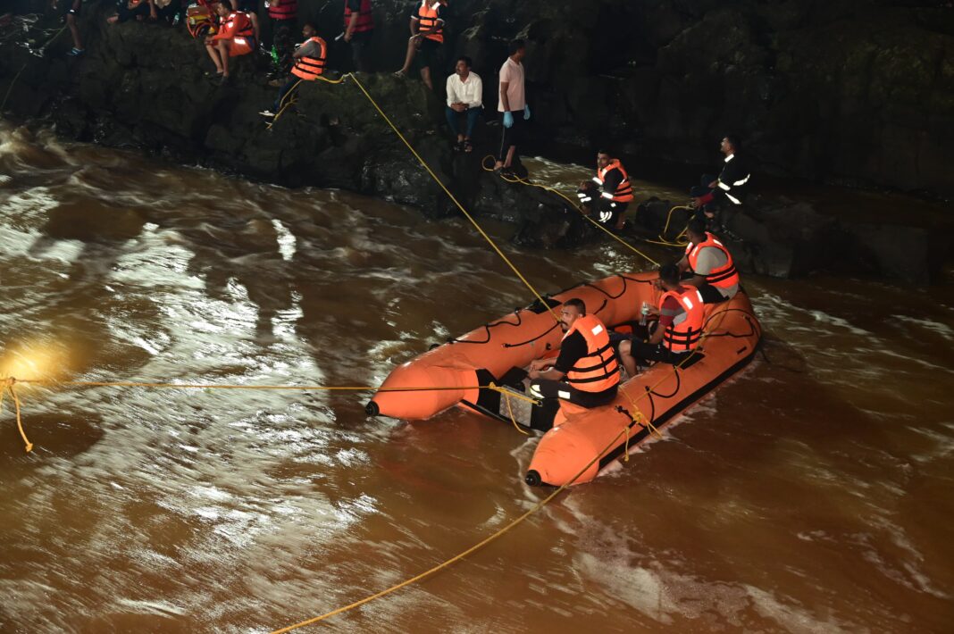 Pune : Maharashtra’s Water Resources and Disaster Management Minister Girish Mahajan visited Kundmala in Maval Taluka this evening to assess the situation and review rescue operations at the site where a bridge over the Indrayani River collapsed.