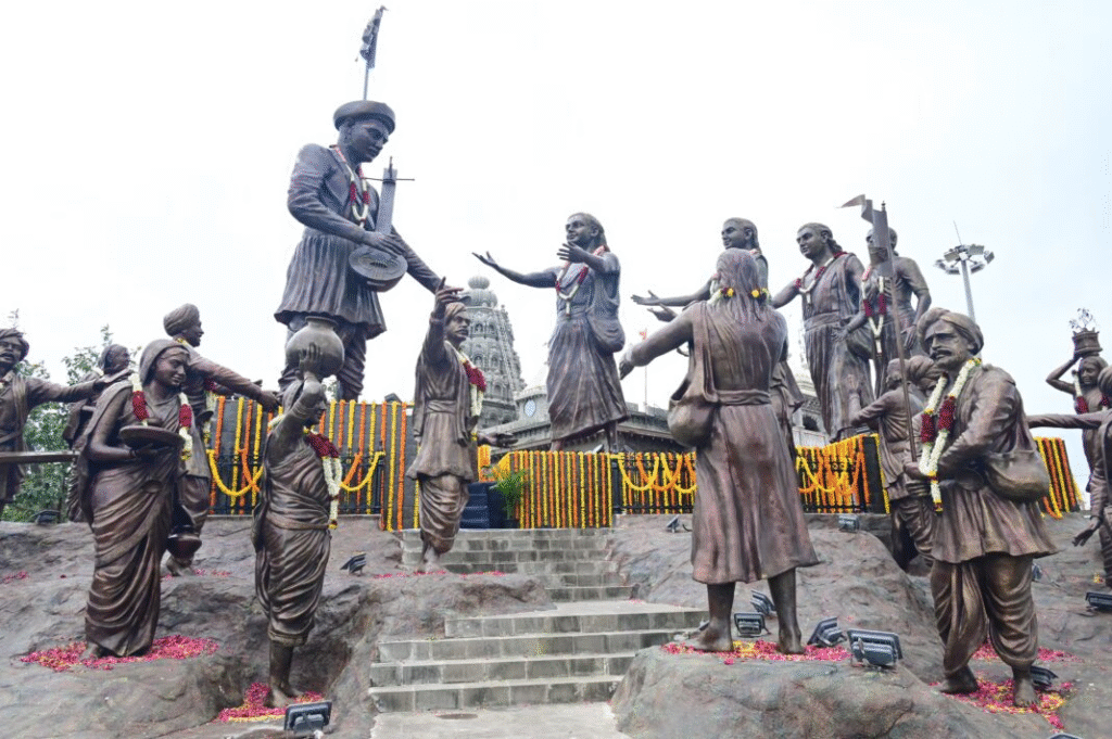 CM Fadnavis also inaugurated a grand sculptural installation depicting the historic meeting of Sant Dnyaneshwar Maharaj and Sant Namdev Maharaj, developed by the Pimpri-Chinchwad Municipal Corporation along the Pune-Alandi Palkhi route. The “Sant Srushti” (World of Saints) installation includes murals and 25 metal sculptures representing various Warkari saints including Sant Namdev, Sant Dnyaneshwar, Sant Sopandev, Sant Nivrutti, Sant Muktabai, and 20 others. A total of 47 bronze sculptures depicting scenes from the lives of saints have been completed at a cost of ₹30.69 crore.