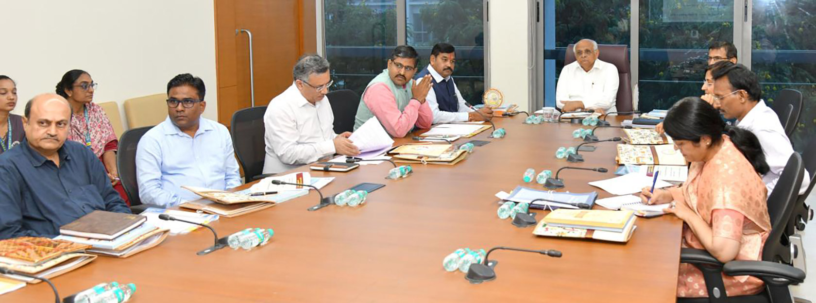Senior officials attending the meeting included Chief Secretary Pankaj Joshi, Additional Chief Secretary of Education Department Sunayna Tomar, Education Principal Secretary Mukesh Kumar, Finance Department Principal Secretary T. Natarajan, Chief Minister’s Additional Principal Secretary Avantika Singh, Higher Education Commissioner Dilip Rana, and Chairman of the Secondary and Higher Secondary Education Board Shri Pandya.