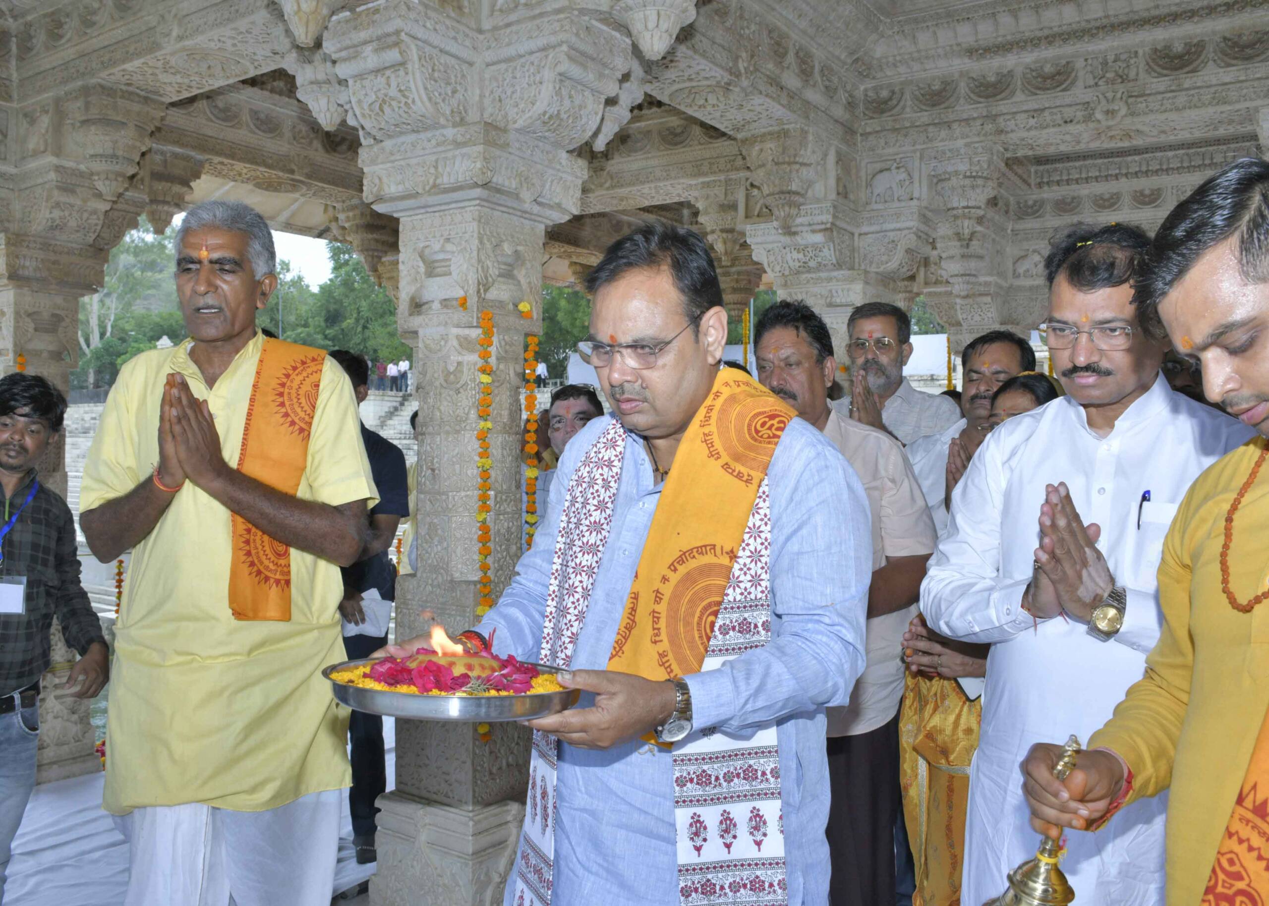 As part of the campaign, CM Sharma performed religious rituals and lake worship (Jheel Aarti) at the Nau Chowki Pal of Rajsamand Lake, followed by the planting of a Sindoor tree. Earlier, he visited Dwarkadhish Temple in Kankroli, where he offered prayers for the state’s welfare. Temple official Bhagwati Lal Paliwal welcomed him with traditional honors and offered prasad.