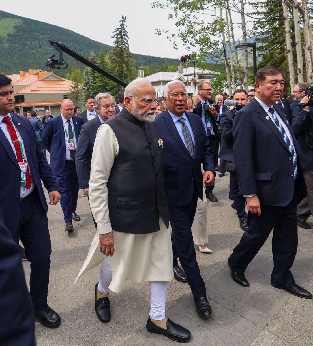 The Prime Minister Shri Narendra Modi had a productive conversation with the President of the European Council, Mr. António Costa during the G7 Summit at Kananaskis, Canada on 17th June 2025.